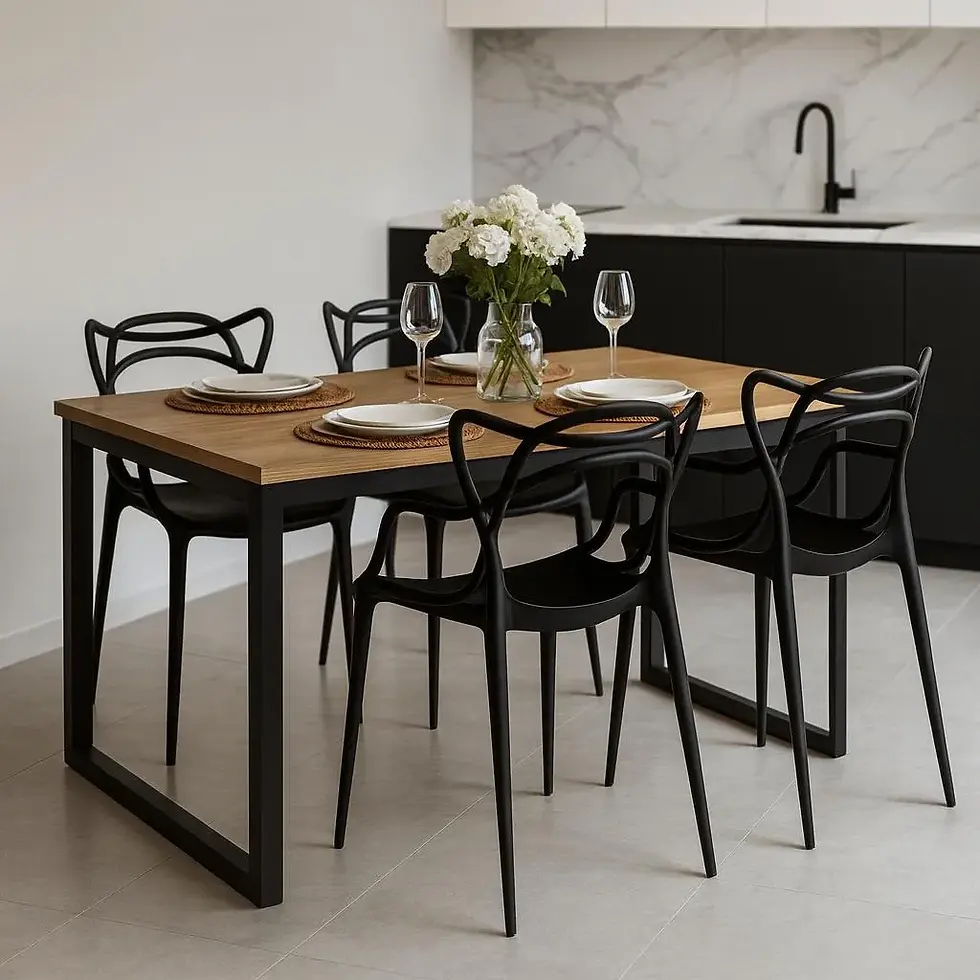 Mesa Cozinha Sala Estar + 4 Cadeiras Allegra Moderna Chique Preto Marrom