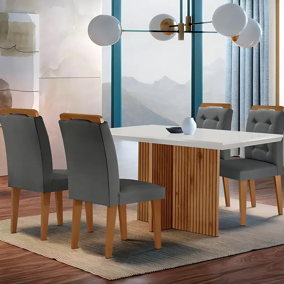 Sala De Jantar Mesa Olímpia 4 Cadeiras Carol Moderna Tampa Off White Com Tec. Gr