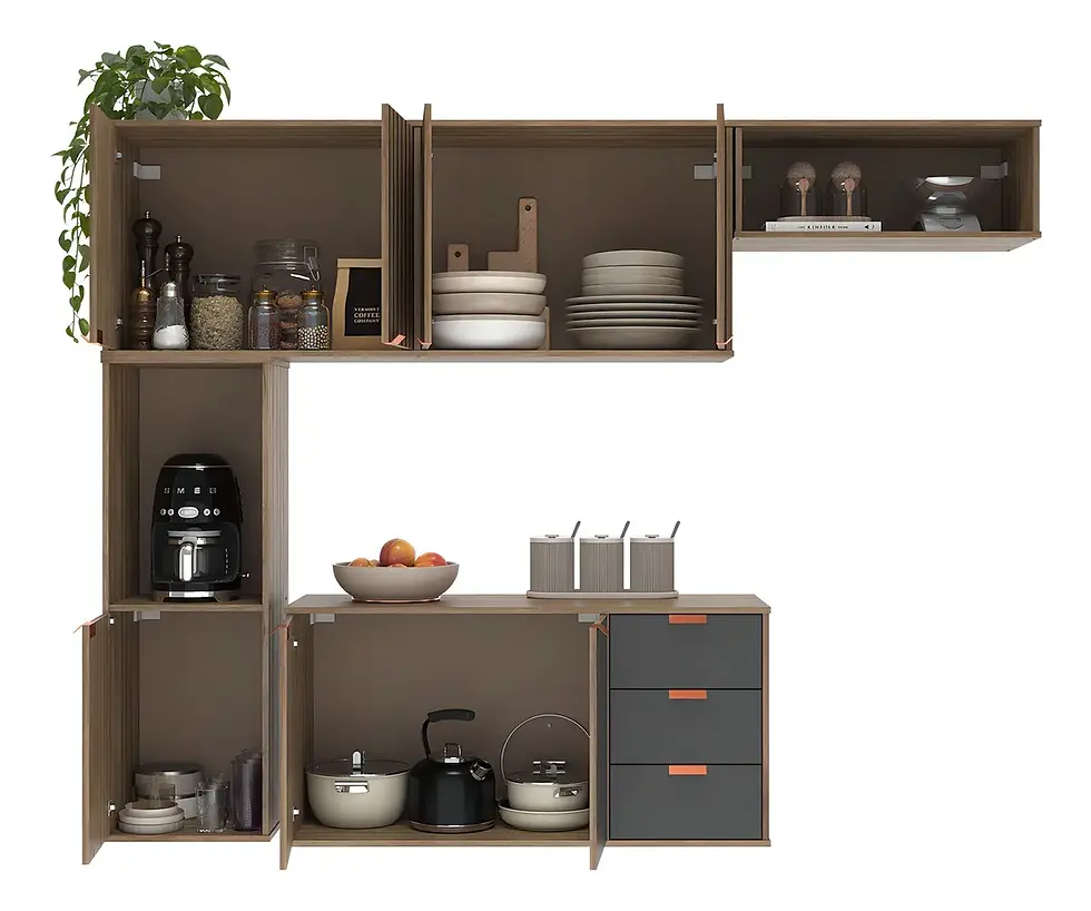 Armário De Cozinha Suspenso Compacto Com 7 Portas E 3 Gavetas Acabamento Moderno