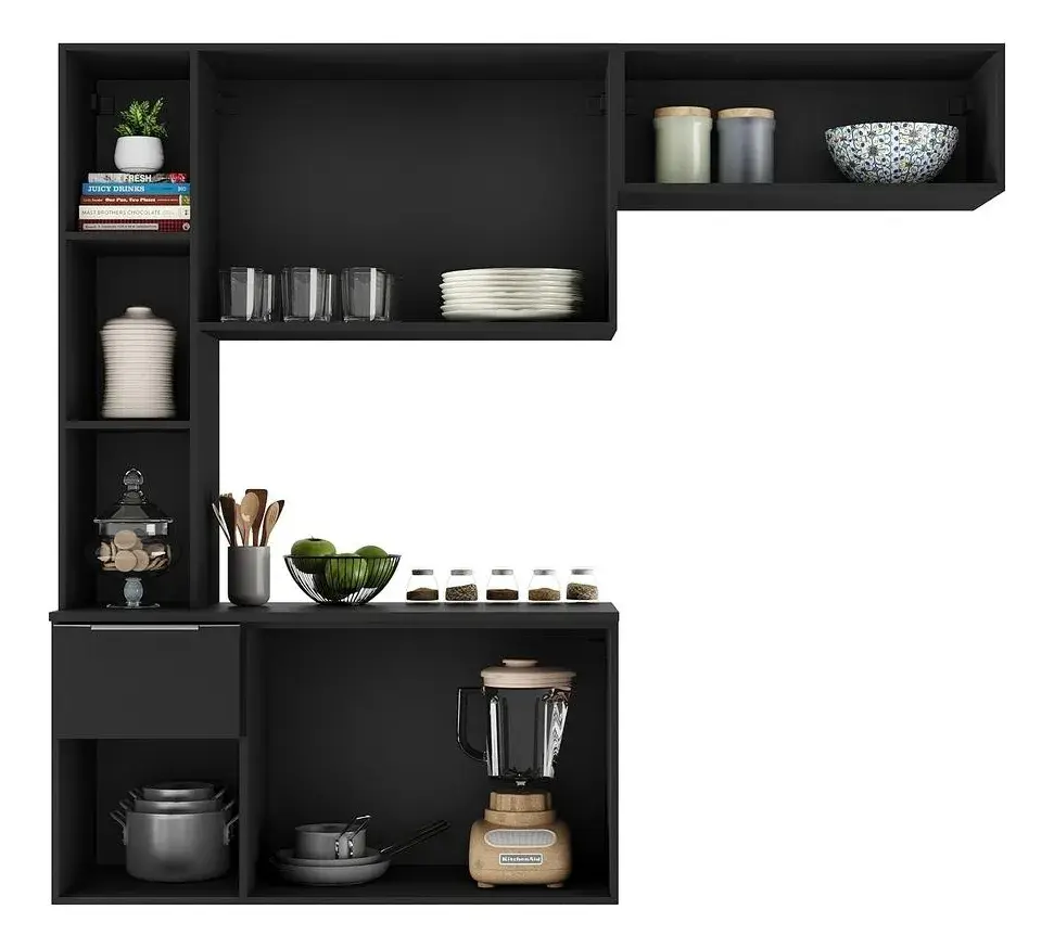 Armário Organizador Multiuso Cozinha Completa Mdp 170 Cm Preto