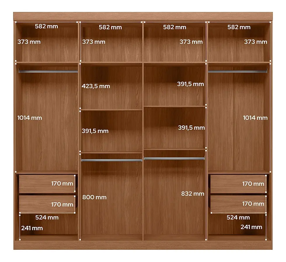 Guarda-roupa Espelho Embers 4 Portas 2 Gavetas Amêndola