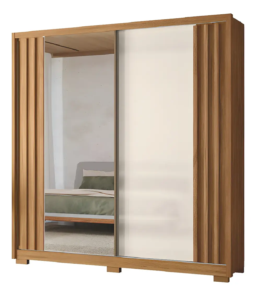Guarda Roupas Casal C/ Espelho 2 Portas Freijó/off colorado Cor Freijo Off